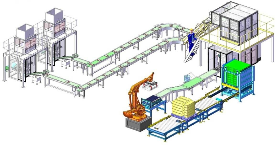 Γ. Γενικά, μια συσκευασία & palletizing μια γραμμή περιλαμβάνουν: Ηλεκτρικό γραφείο, ράβοντας μηχανή, ράβοντας μεταφορέας, μηχανή ώθησης τσαντών, μεταφορέας Reshapen, ανιχνευτής μετάλλων, ελεγκτής βάρους, τσάντα Rejecter, μεταφορέας εκτυπωτών Inkjet, εκτυπωτής Inkjet, περιοδικό παλετών, Palletizing μεταφορέας, ρομπότ, τυλίγοντας μηχανή, που τελειώνουν ο μεταφορέας.