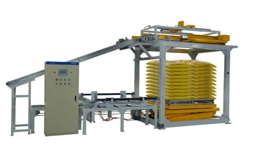 Οι σωροί palletizer περιείχαν τα υλικά (στα χαρτοκιβώτια, ύφανε τις τσάντες, τα βαρέλια, κ.λπ.) ή συσκεύασαν/unpackaged στοιχεία κανονικός-μορφής στη (ξύλινη) παλέτα σύμφωνα με μια ορισμένη ρύθμιση αυτόματα. Μετά από να συσσωρεύσει διάφορα στρώματα, η πλήρης παλέτα θα μεταβιβαστεί έξω για την περαιτέρω συσκευασία ή στην αποθήκη εμπορευμάτων από forklift. Είναι κατάλληλο για τη συσσώρευση των τσαντών και των κιβωτίων της τρικλισμένης ρύθμισης στη διαδικασία μετά από-συσκευασίας.
