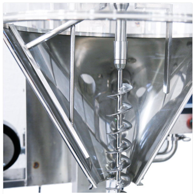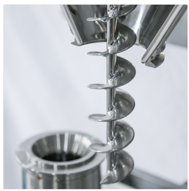 4. Έχετε το ένα να ανακατώσει στη χοάνη, βεβαιώνει ότι η σκόνη συμπληρώνει το τρυπάνι.